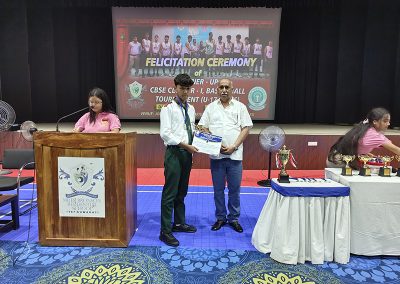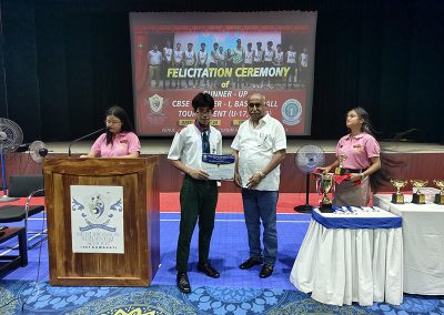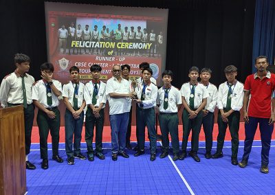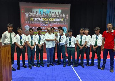 To honor their achievement, a Special Morning Assembly was organized on Tuesday, 10th September 2024. During the assembly, Dr. N.K. Dutta, Founder and Principal of MBRS, congratulated the players on their remarkable success. He praised their hard work, perseverance, and dedication, and presented them with Certificates and Trophies on behalf of the school.